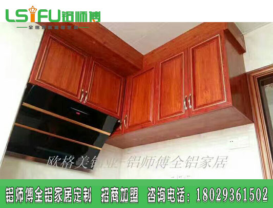 鋁師傅廚房仿木紋封閉式吊式全鋁櫥柜定制設(shè)計(jì)裝修效果圖