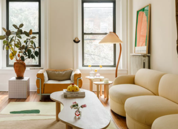 打造奶茶風的家非常容易:大顏色一鋪,同色系家具搭配好,再用綠植和掛畫補補氛圍,就大功告成啦!
