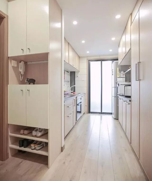 玄關(guān)空間要充分利用起來,全鋁鞋柜不要半截,建議做到頂,這樣就把上方空間都利用起來了,等你真正入住,就知道家里東西多了,多點儲物空間總是好事。