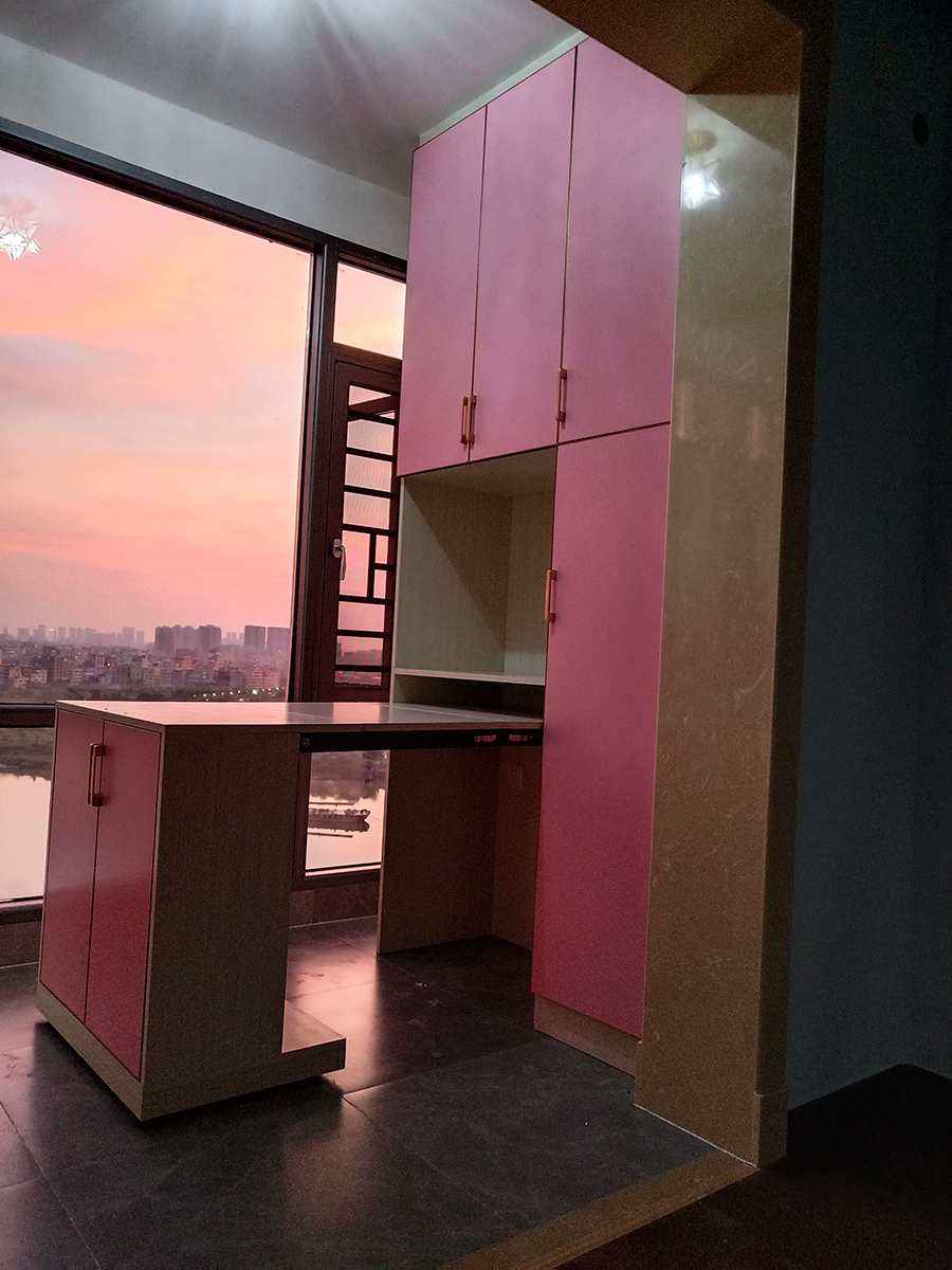 在陽臺也可以考慮做折疊款書桌,在陽臺邊寫作業(yè)辦公,光線好,夜晚的時候還可以泡杯茶看夜景,平時不用的時候,可以把書桌給藏進柜子里,讓陽臺看起來更整潔寬敞。