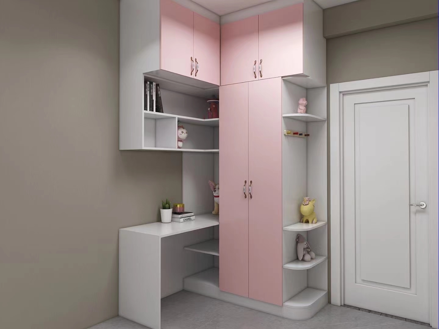 書柜+寫字臺書桌是學(xué)齡期兒童房必備,書桌上方可以做上隔板或吊柜,增添儲物能力,書桌的一邊加上柜子。書桌上方的吊柜,可以選擇用玻璃柜門,既可以避免落灰的問題,想要拿東西的時候,也更容易找到。