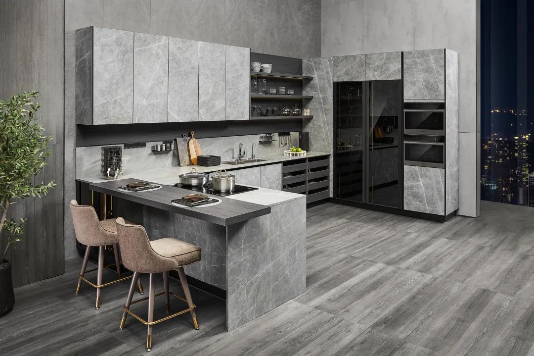 中性色黑白灰最能給人高級(jí)高端的感覺,憑著自身的氣質(zhì),給人一種賞心悅目,經(jīng)典永不過時(shí)的美感。高級(jí)星空灰搭配大理石紋高光板,凸顯出住戶獨(dú)特的品味。 全鋁櫥柜以鋁代木,防水防火防蟲蛀特別適合水深火熱的廚房,鋁師傅全鋁家居可以根據(jù)戶型尺寸大小量身定制全鋁櫥柜,歡迎來電咨詢!