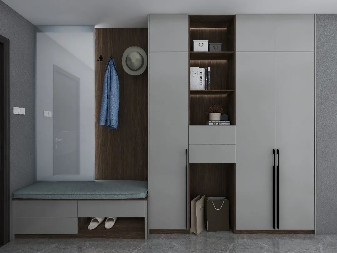 既是隔斷柜又是全鋁鞋柜,一柜到頂,大大增加了收納空間還顯得大氣簡(jiǎn)潔。再配上換鞋凳,實(shí)用又美觀。