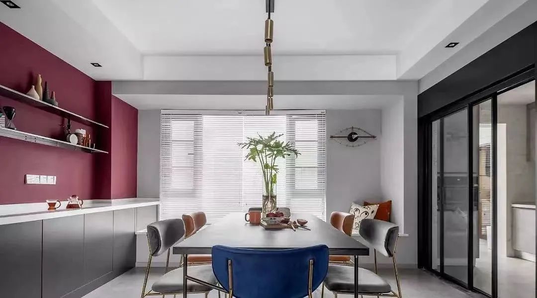 撞色,是指對比色搭配,一般有兩種選擇,一種是補(bǔ)色的搭配,另一種是類色的搭配,在色盤上面,兩個(gè)相對的顏色搭配就是補(bǔ)色的搭配,相近的顏色就是類色的搭配。我們一般在需要營造某種活潑、有動(dòng)感的空間時(shí),就會(huì)選擇紅與綠的搭配,或者藍(lán)與綠的搭配。