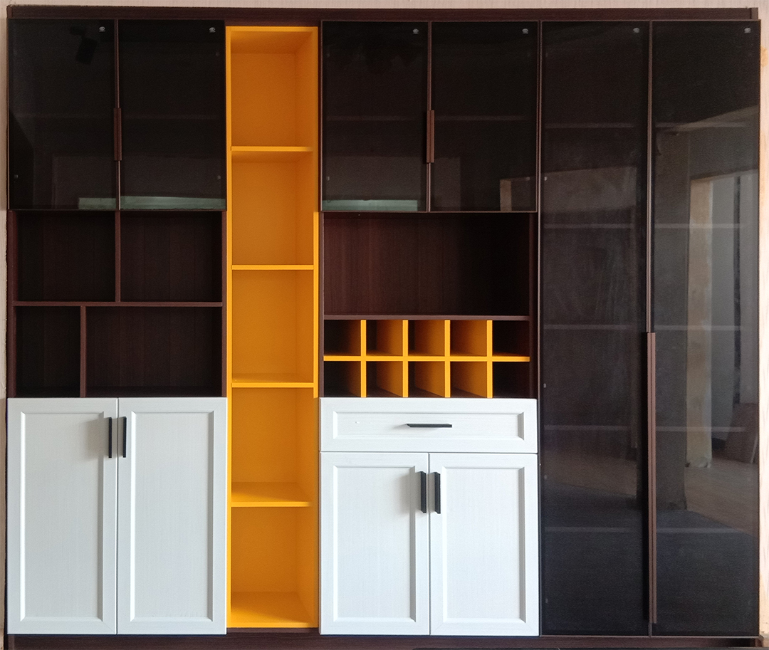 怕配色出錯可以遵循這個原則:大面積淡色調(diào)+小面積飽和度高的顏色。像這樣,地柜和吊柜門板都選擇大面積淡色高光白的基礎(chǔ)上,開放式套格用檸檬黃等亮色點(diǎn)綴。