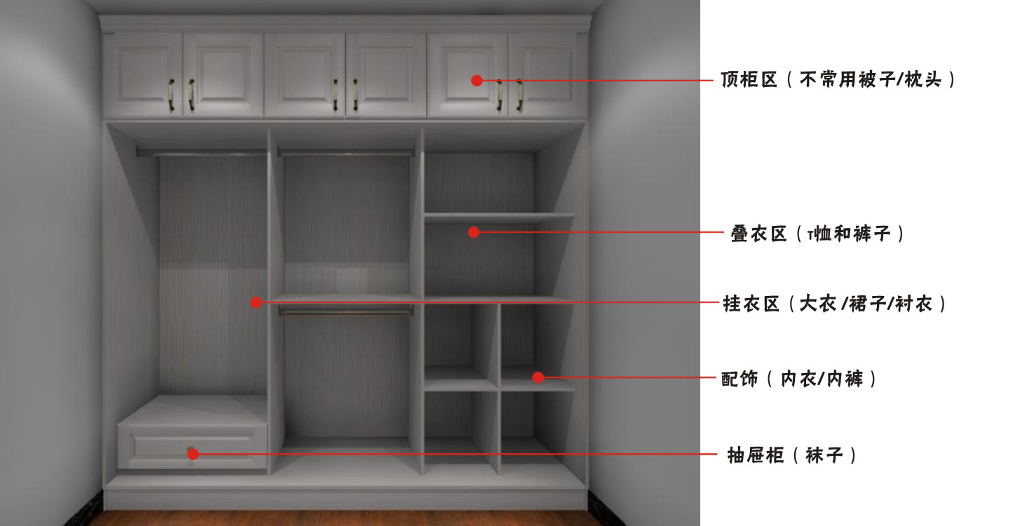 墻面空間0浪費(fèi),內(nèi)部分區(qū)合理,款式按需定制,各類配件按需定制,小物件分類有序。